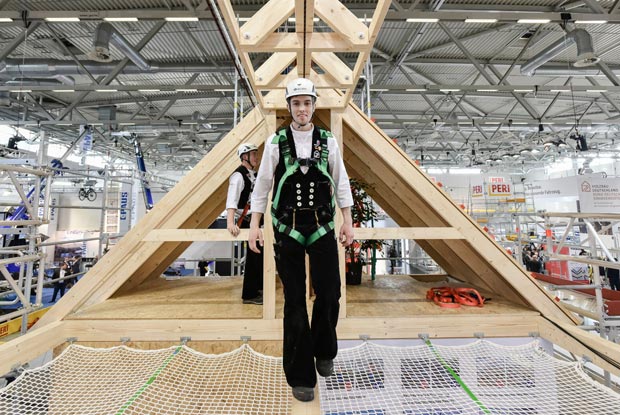 Auf der Messe Dach+Holz International in Stuttgart von 28. bis 31. Januar 2020 ist einiges geboten: Besucher können etwa einen Dachstuhl per Drohne inspizieren, Lastenräder testen oder brenzlige Arbeitssituationen am Bau mit einer VR-Brille erleben.