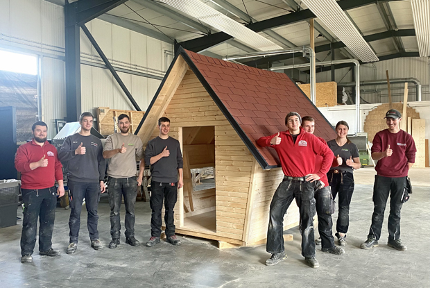 Als gemeinsames Projekt der Auszubildenden der Zimmererinnung Schwandorf wurde kürzlich ein Kinderspielhaus gefertigt. Dafür trafen sich die Azubis der unterschiedlichen Innungsbetriebe bei Kurz Holzhaus in Schwarzenfeld. In den zweieinhalb Tagen, in denen das Haus angefertigt wurde, lernten sich die Azubis auch untereinander besser kennen. Das Projekt dient außerdem einem guten Zweck: Bei der Eröffnung der Bildungsmesse in Maxhütte am 3. März wird das Kinderspielhaus durch den Landrat verlost.